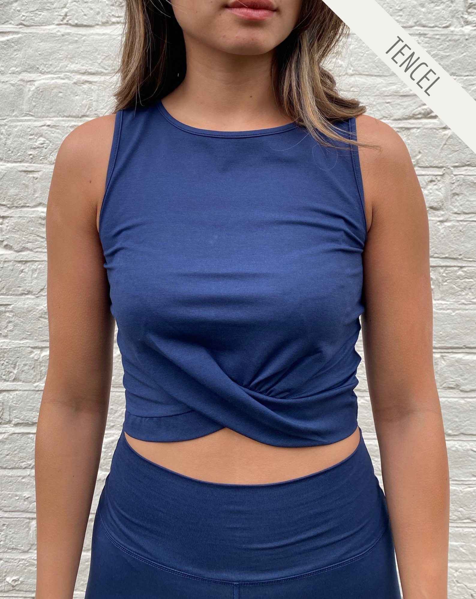 Designed with a flattering length, breeze through your training in our twisted front top. Soft and gentle on the skin - our lyocell fabric is also a lot more absorbent than traditional cotton, making it the perfect match for any workout.